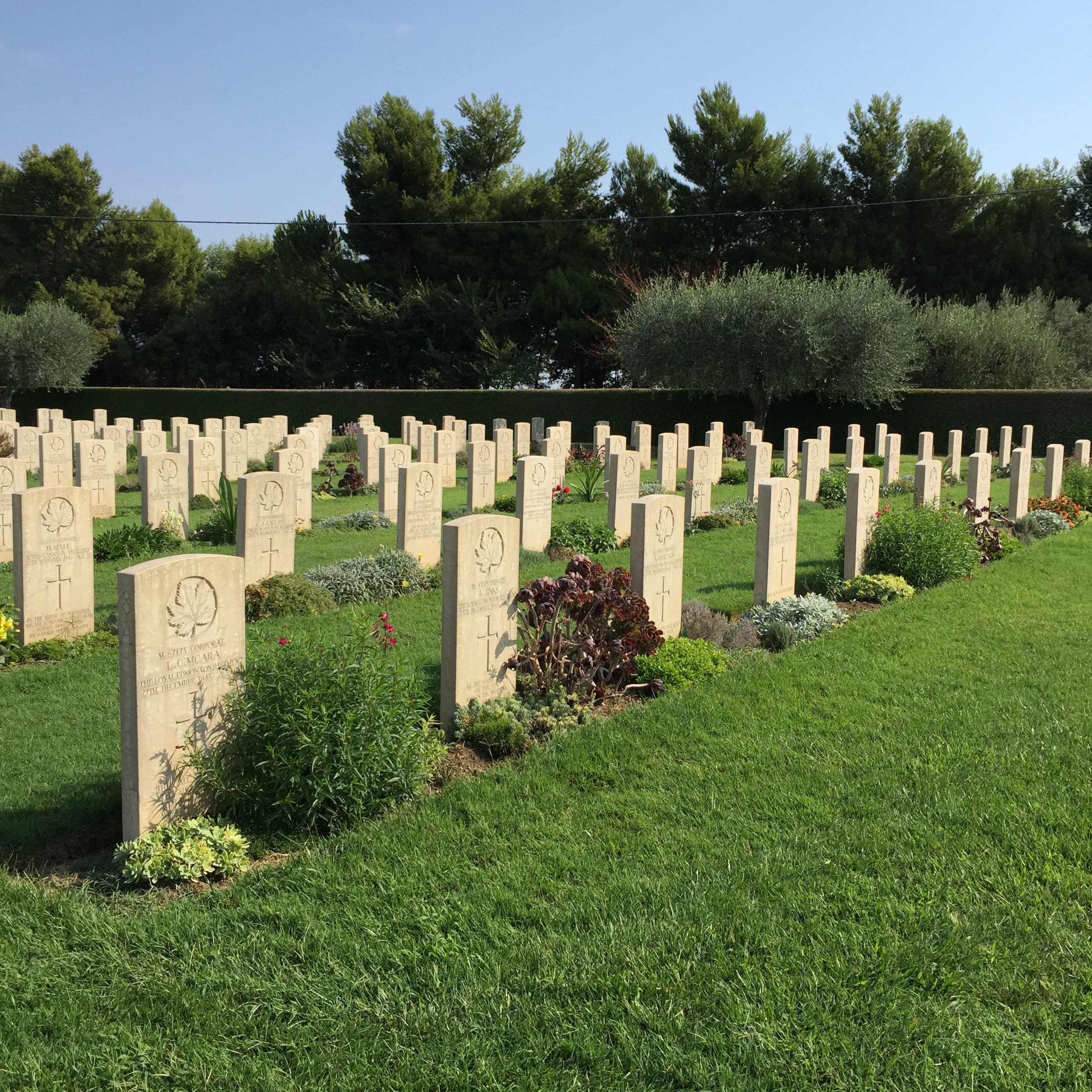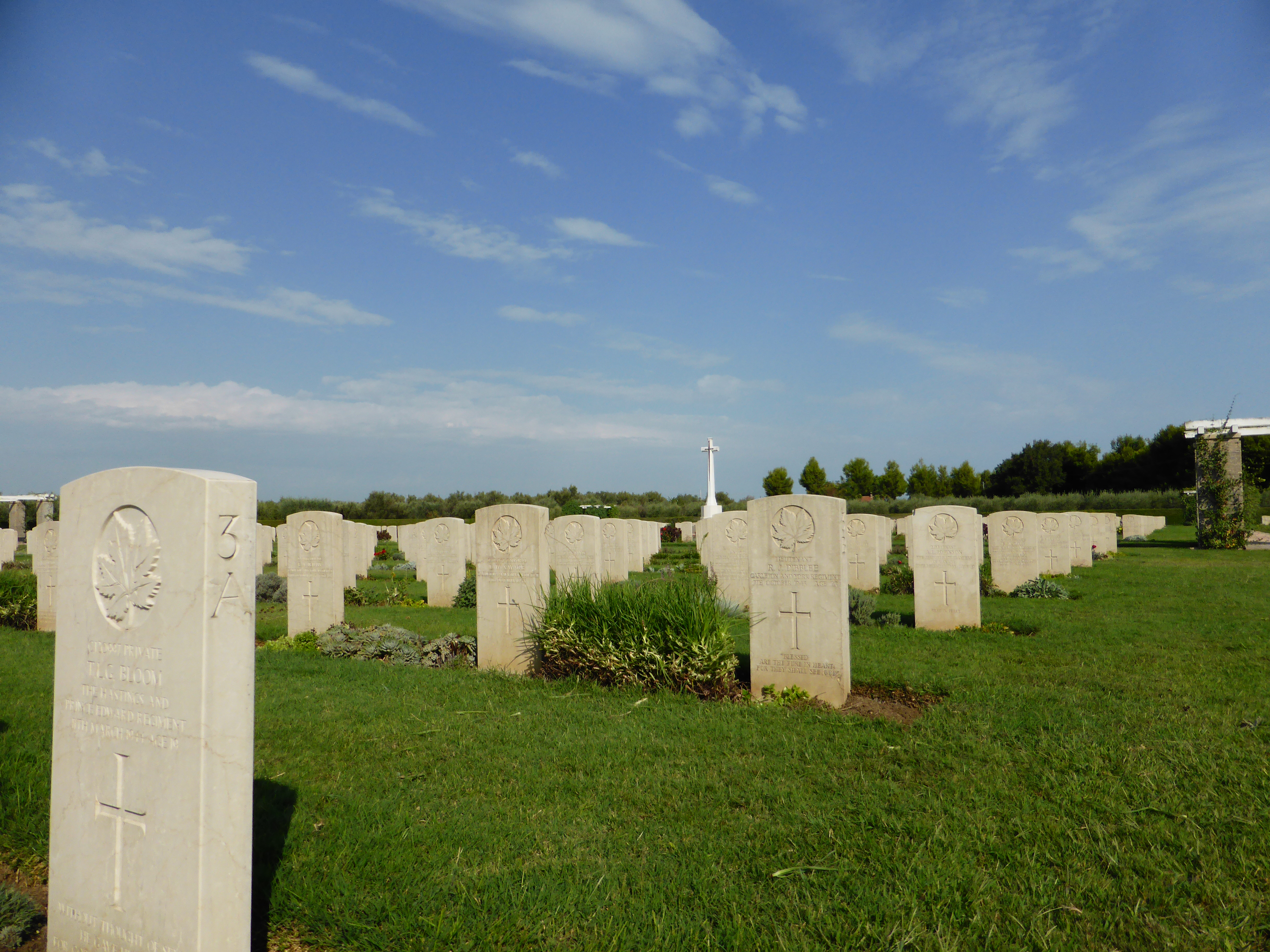 Together, we visited the Moro River Canadian War Cemetery in the nearby town of Ortona. The battle against the German defensive line, known as the Gustaf Line, cost the Canadians dearly. However Ortona was taken after eight days of fighting. The Canadian War Cemetery contains the graves of 1615 Commonwealth soldiers, with 50 remaining unidentified and 1375 of them being Canadian.